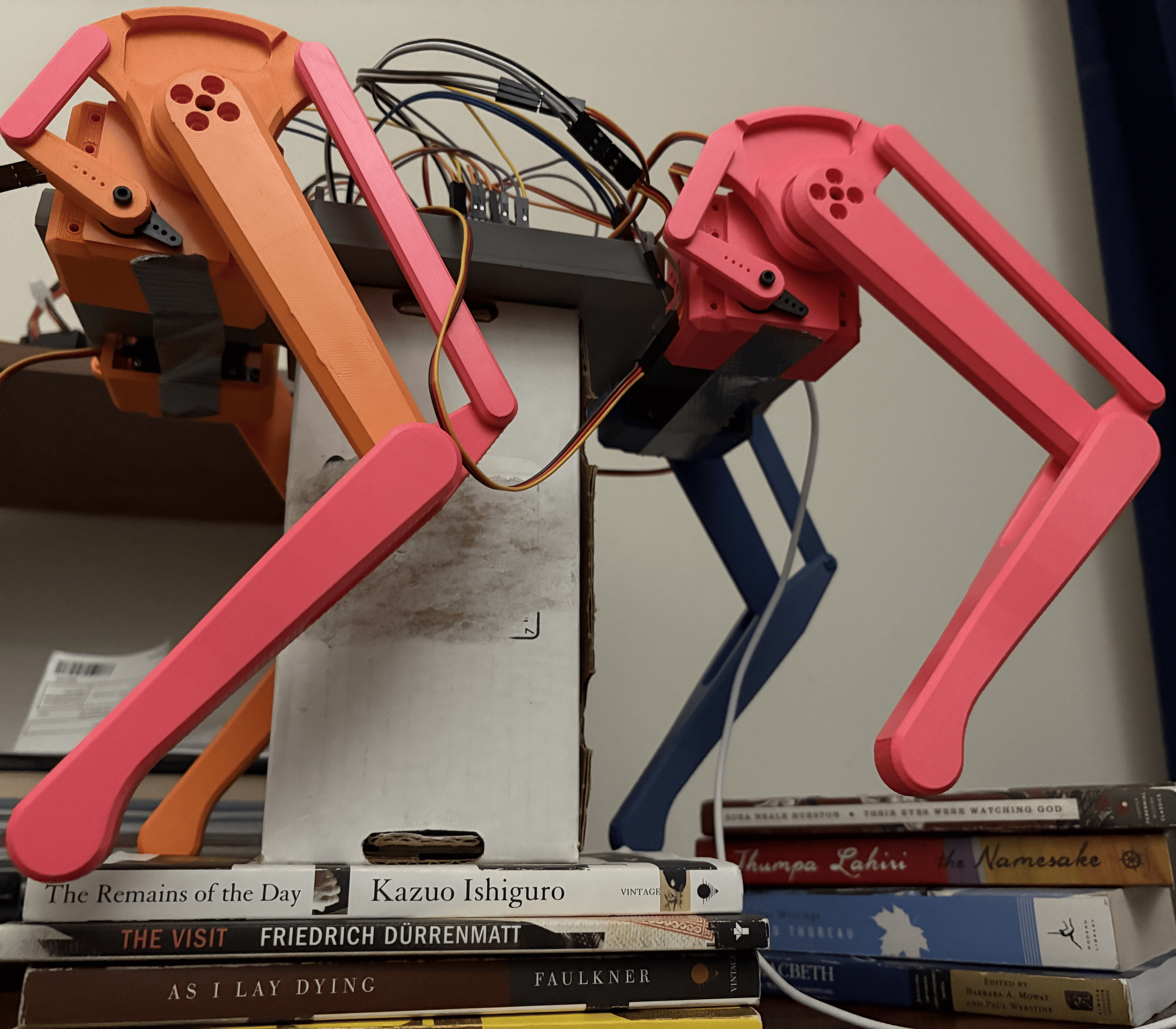 - Mechanical Design: I redesigned and modeled all mechanical components in CAD, creating a unique chassis and leg structure optimized for 3D printing, ease of assembly, and the servos used.